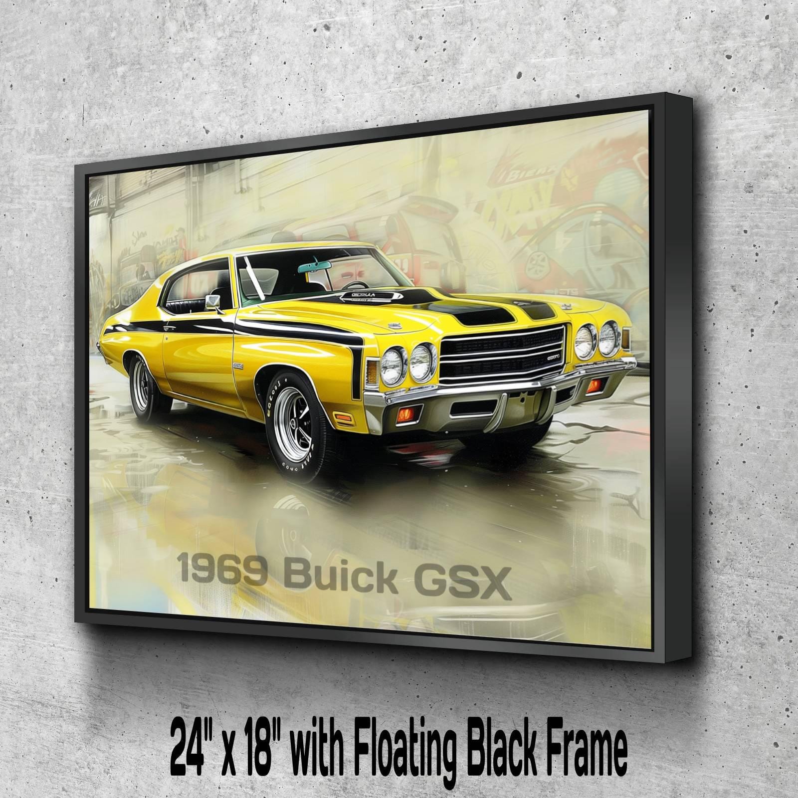 1970 Buick GSX Canvas Print | Yellow Vintage Auto Wall Art Decor | Retro Muscle Car | Car Lovers Poster Gift | Car Decor | Art Print