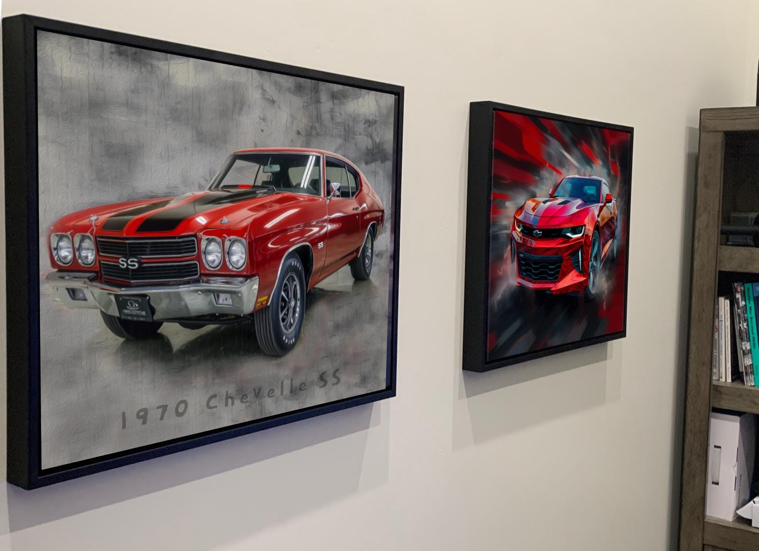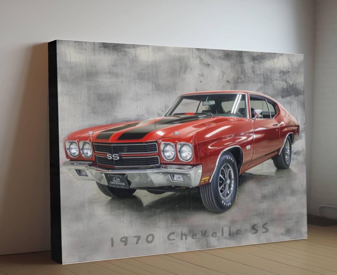 1970 Chevrolet Chevelle SS 454 Canvas Print | Vintage Auto Wall Art Decor | Black Red Retro Muscle Car | Car Lovers Poster Gift