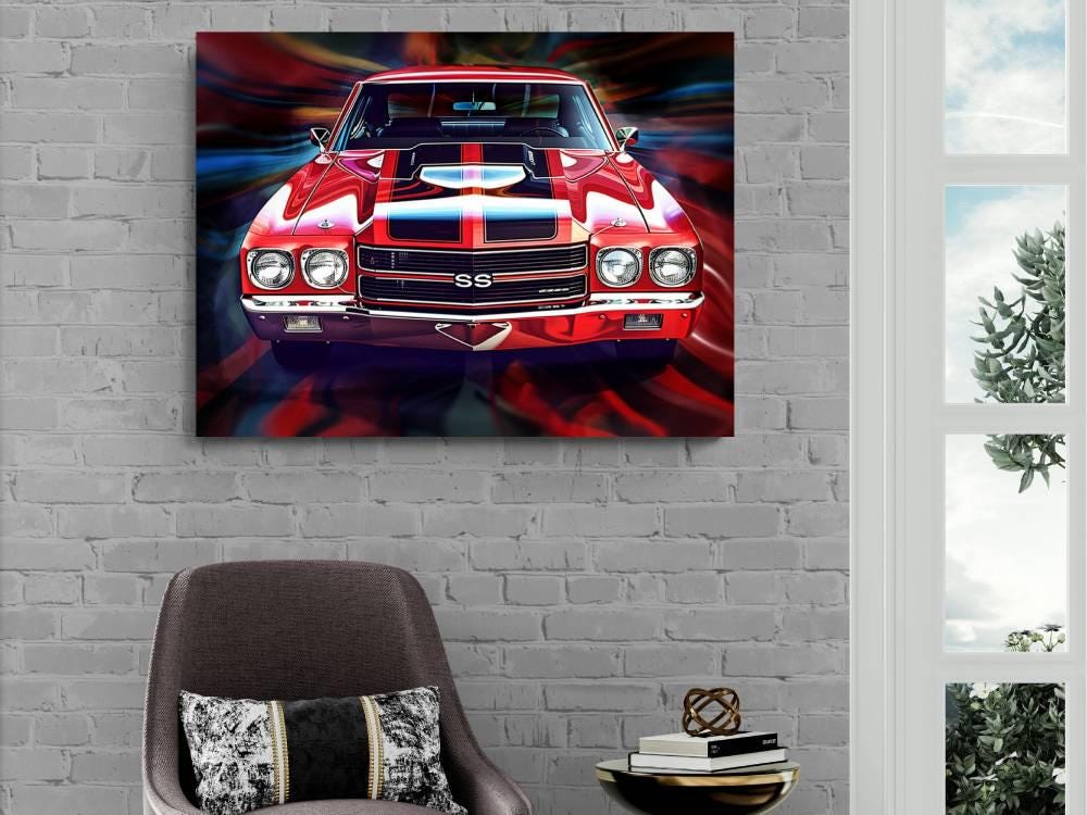 1970 Chevrolet Chevelle SS 454 Red from Front Canvas Print | Vintage Auto Wall Art Decor | Retro Muscle Car | Car Lovers Poster Gift