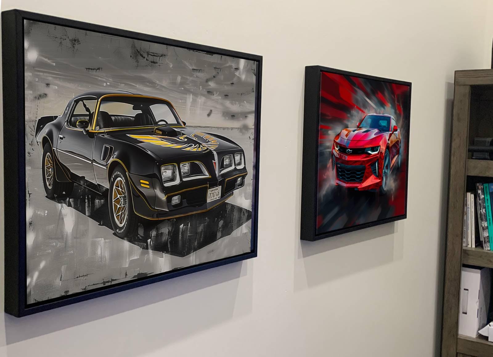 Landis Lorenzo's use of bold brush strokes and an abstract backdrop accentuates the vintage charm of the Pontiac FIrebird Trans Am, sporting a black body with gold accents, making it a must-have for car enthusiasts and art collectors. This print is a tribute to the golden age of cars and is sure to spark conversations and admiration from all who see it.