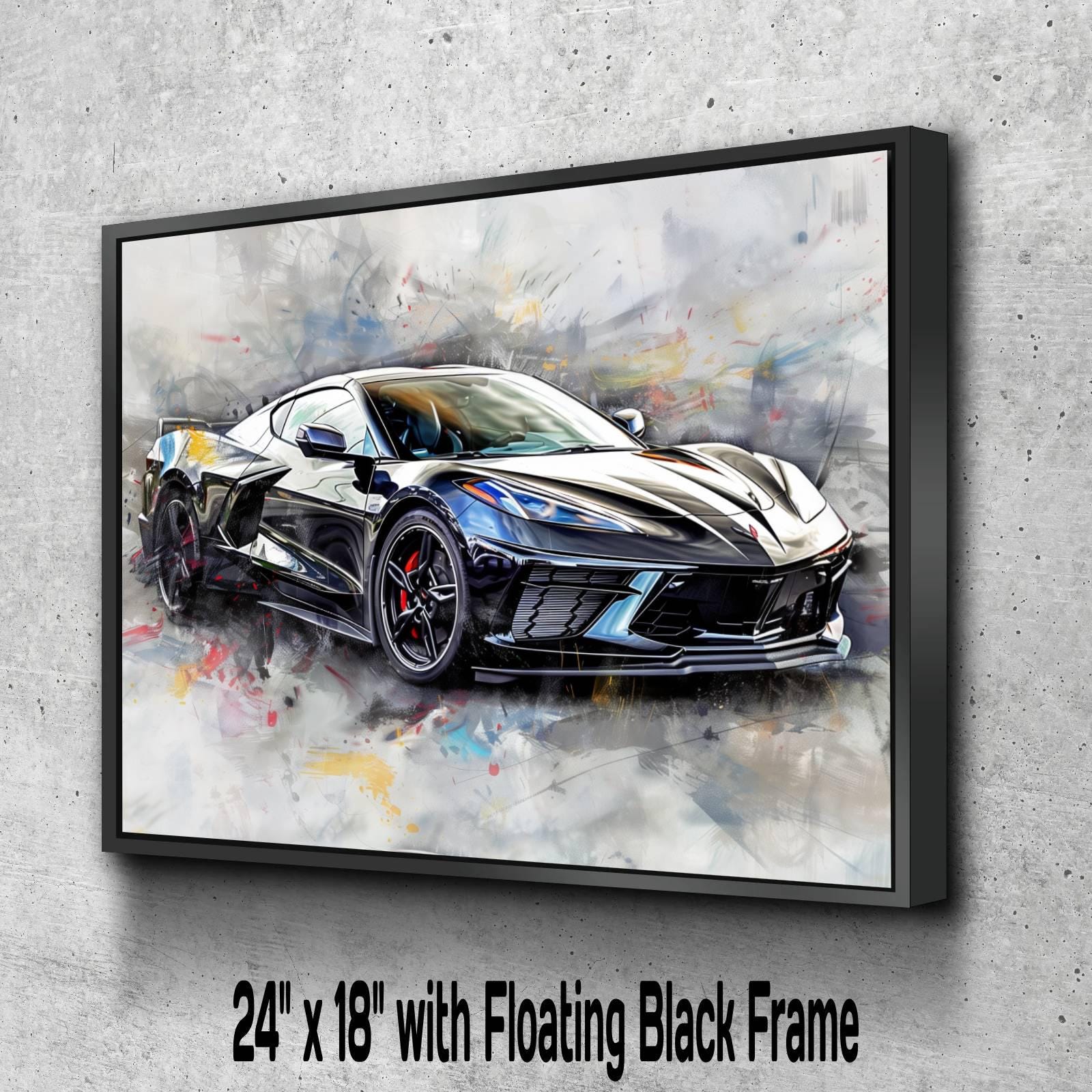 2025 C8 Corvette Canvas Wall Art | Black Chevrolet Sports Car Print | Modern Auto Poster | Car Lover Gift | C8 Vette Decor | Supercar Poster