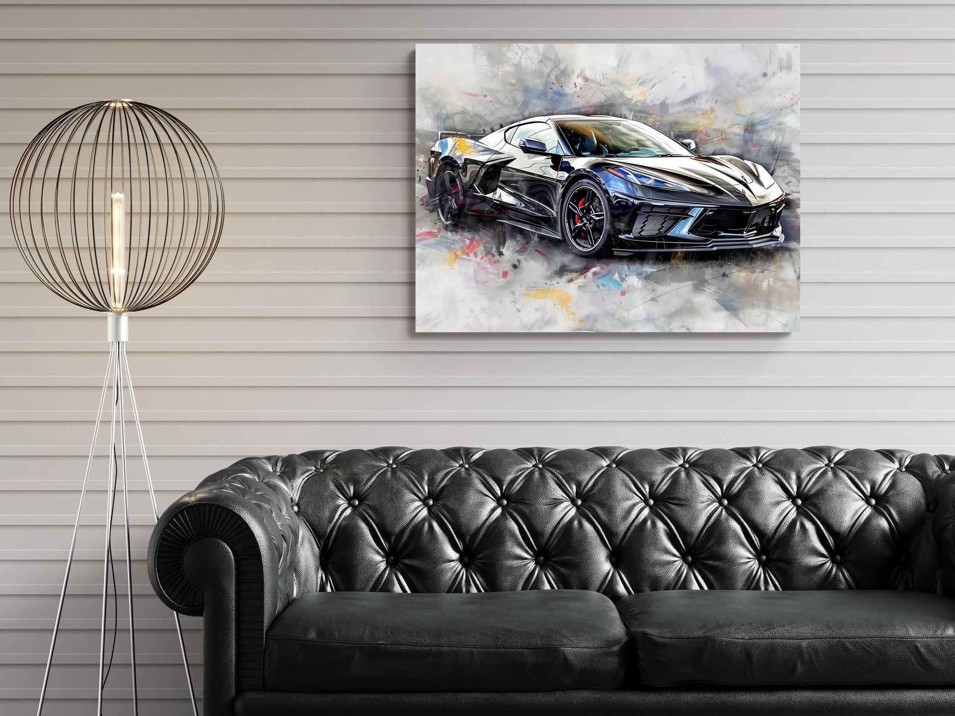 2025 C8 Corvette Canvas Wall Art | Black Chevrolet Sports Car Print | Modern Auto Poster | Car Lover Gift | C8 Vette Decor | Supercar Poster