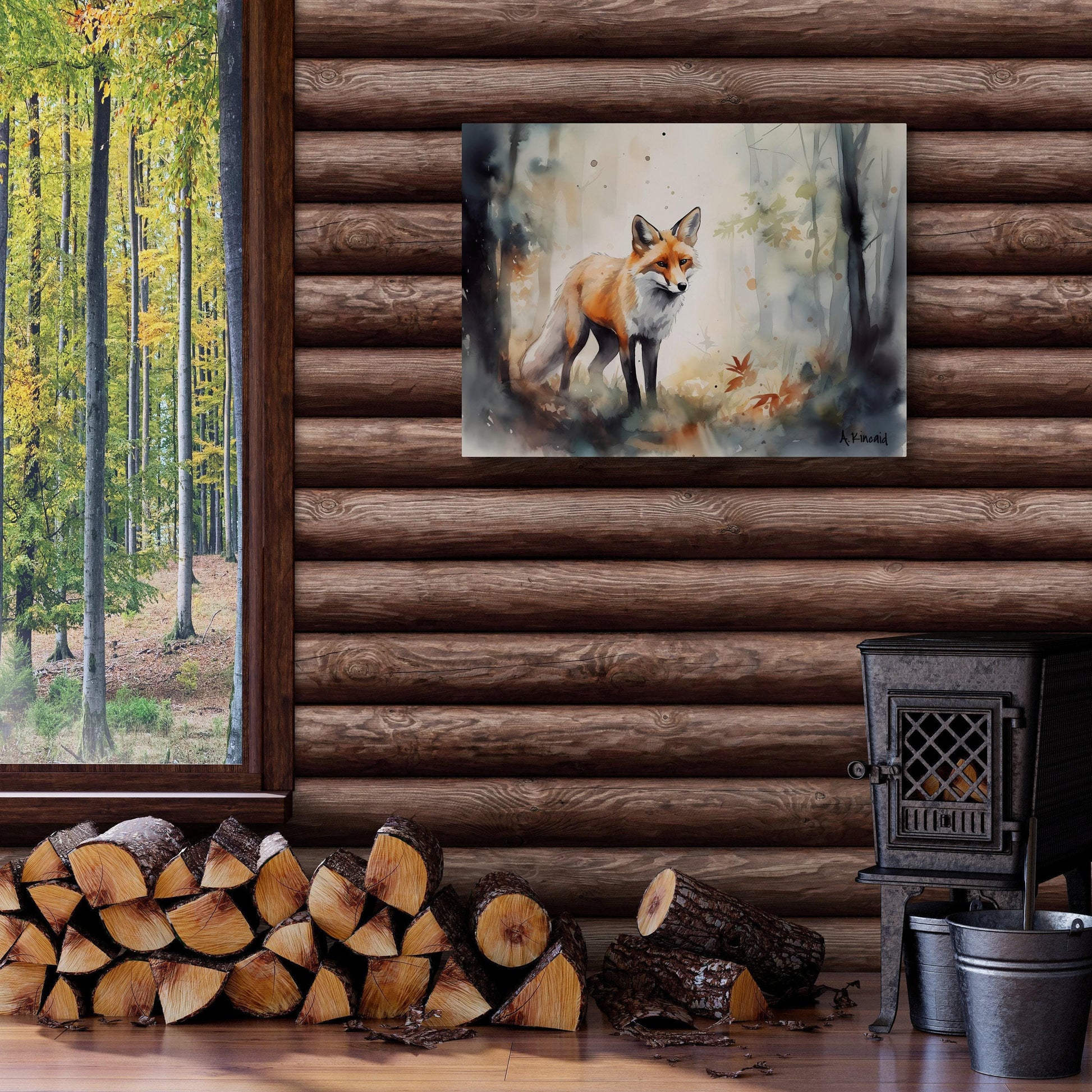 Fox in Forest | Canvas Print | Wildlife Art | Cabin Art | Forest Art | Archer Kincaid | foxes watercolor