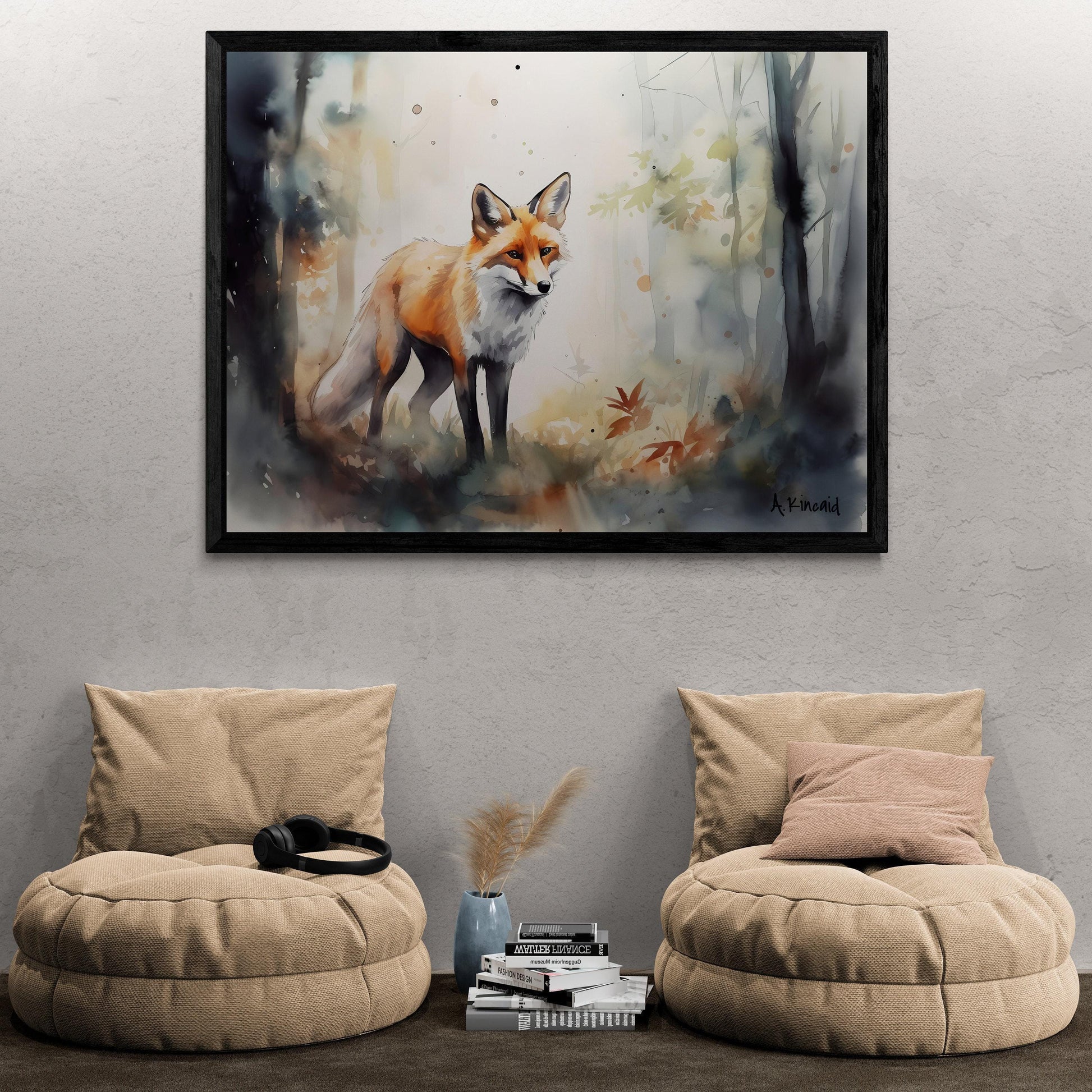 "Fox in Forest" is part of Archer Kincaid's Forest Series, this watercolor print of a deer in the forest is a top-quality canvas print of his original.