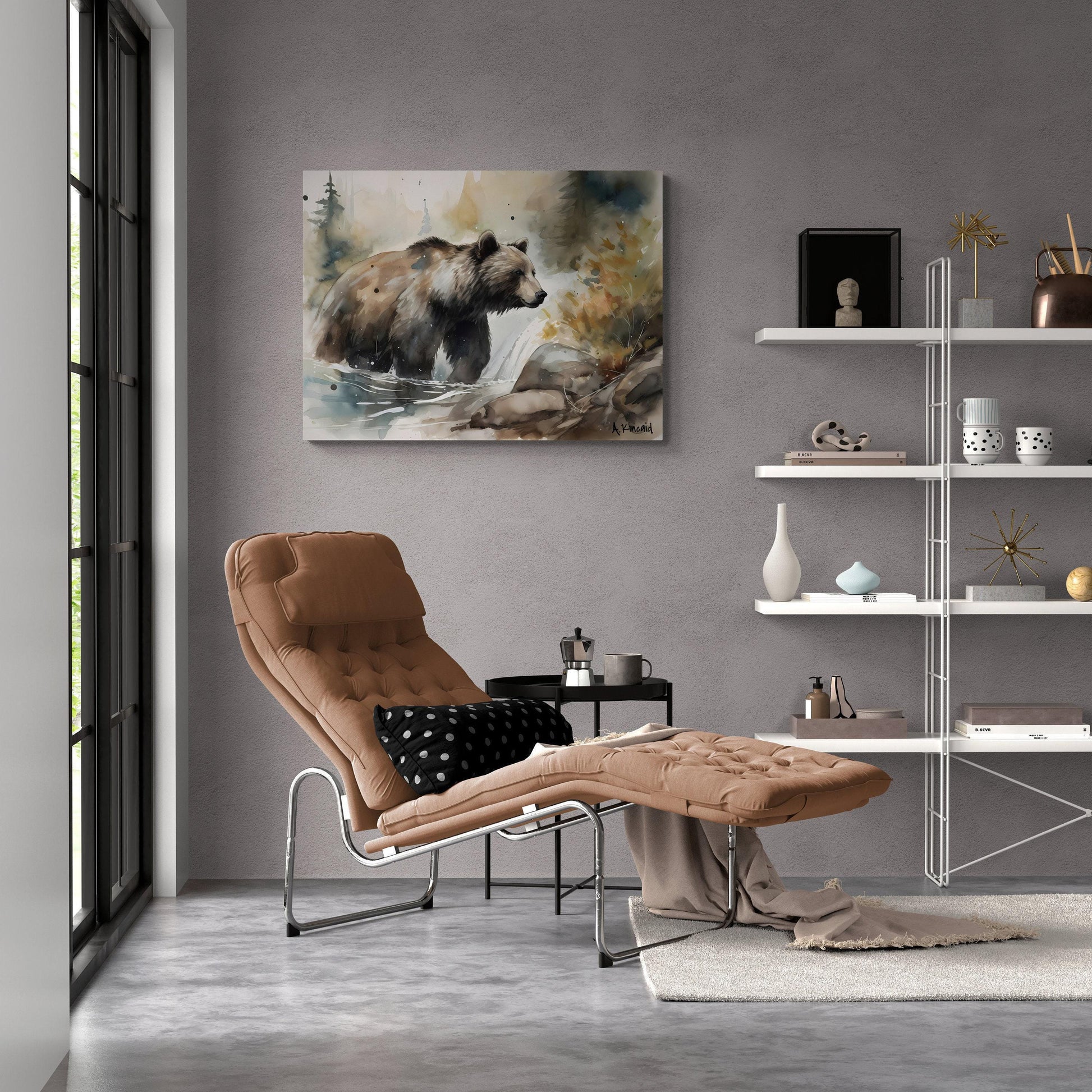 Grizzly Bear by Waterfall | Brown Bear Watercolor Forest Series | Canvas Print | Wildlife Art | Cabin Art | Archer Kincaid