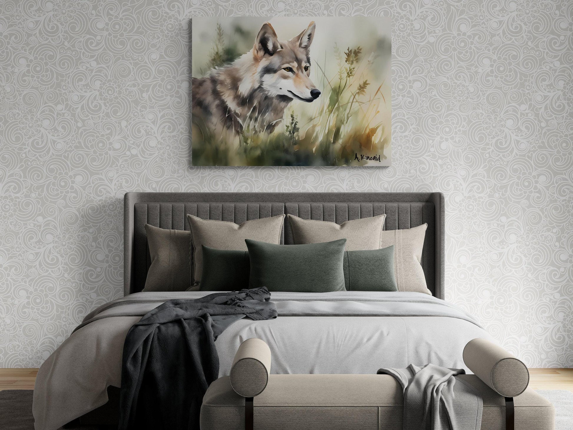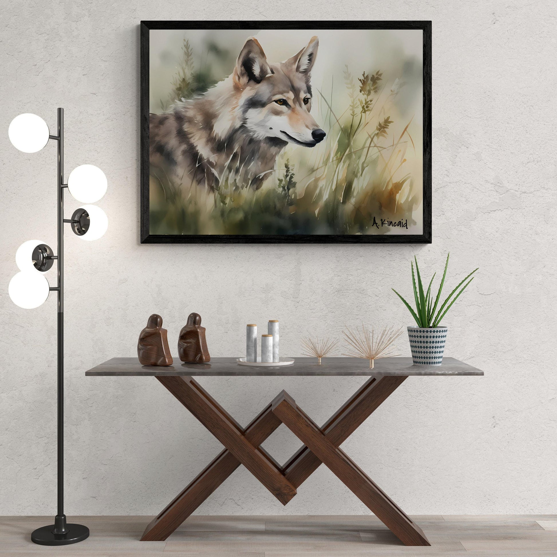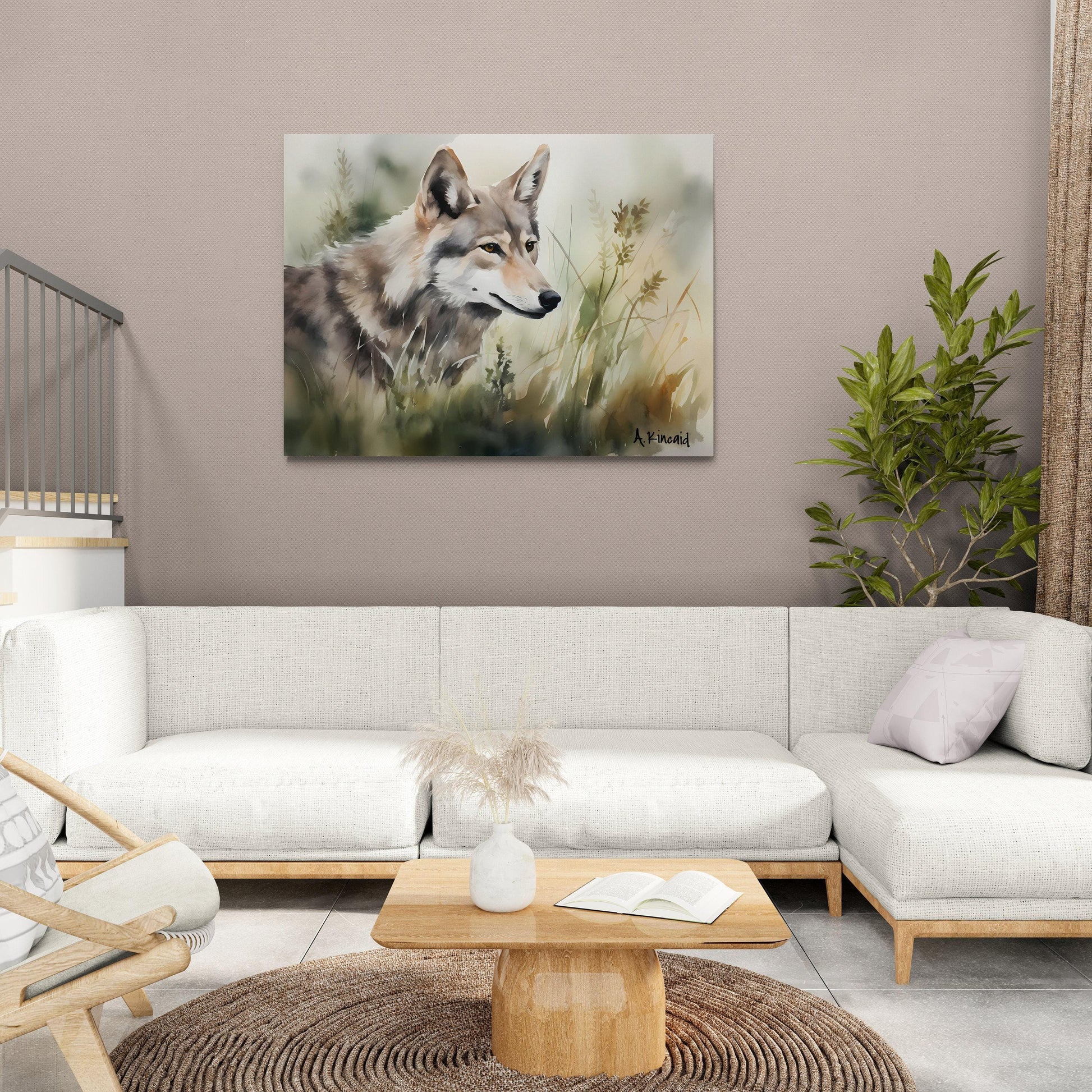 "Wolf In Grass #1 " is part of Archer Kincaid's Forest Series, this watercolor print of a wolf in the grass is a top-quality canvas print of his original.