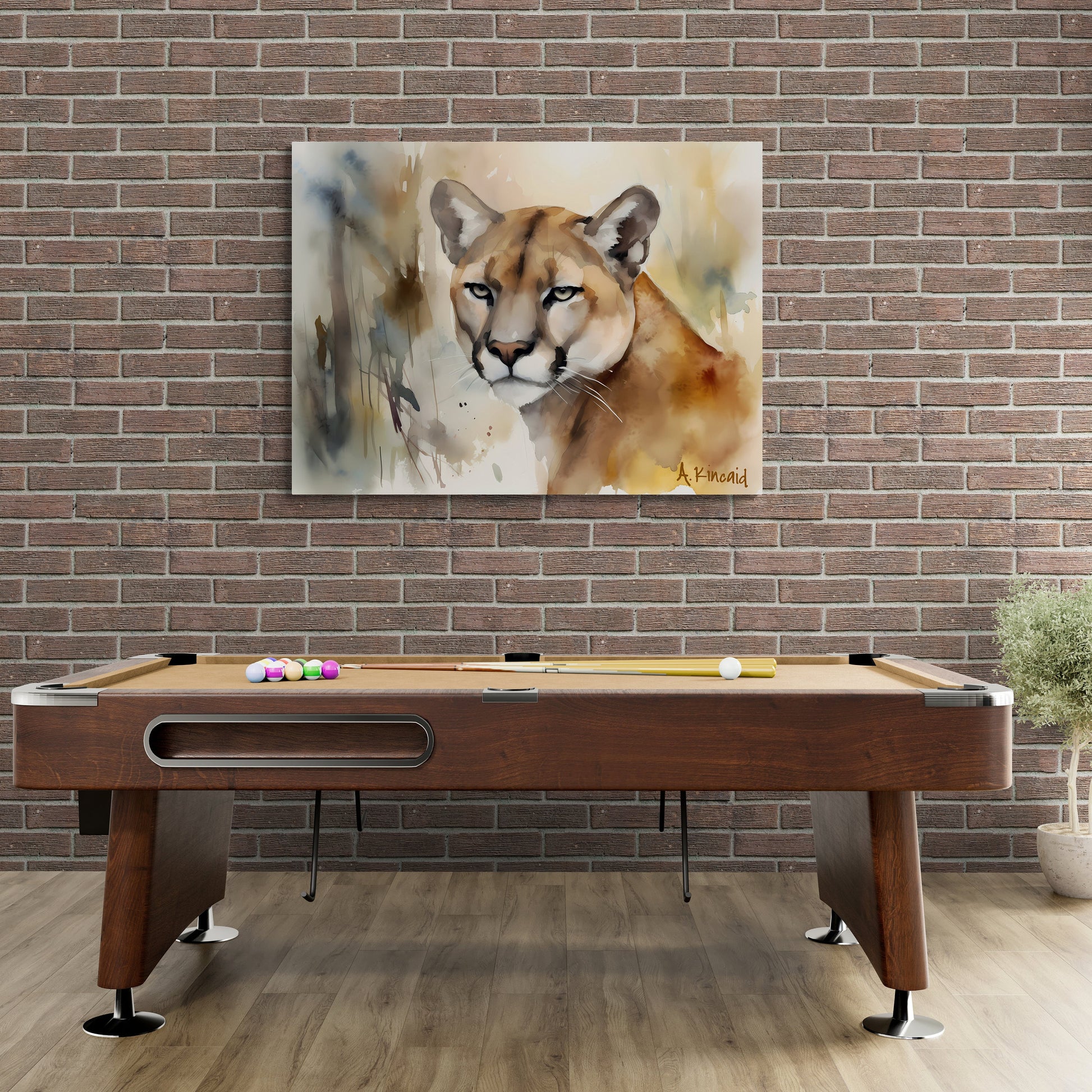 "Mountain Lion Portrait " is part of Archer Kincaid's Forest Series, this watercolor print of a mountain lion is a top-quality canvas print of his original.