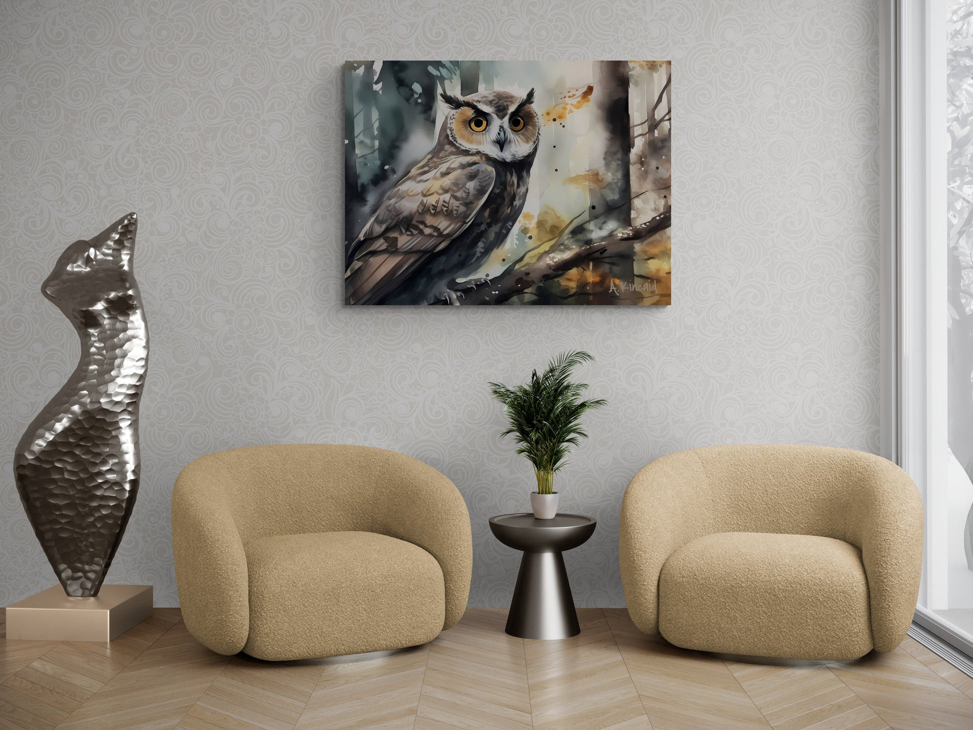 Owl | Canvas Print | Wildlife Art | Artful Watercolor Owl | Archer Kincaid | Forest Art