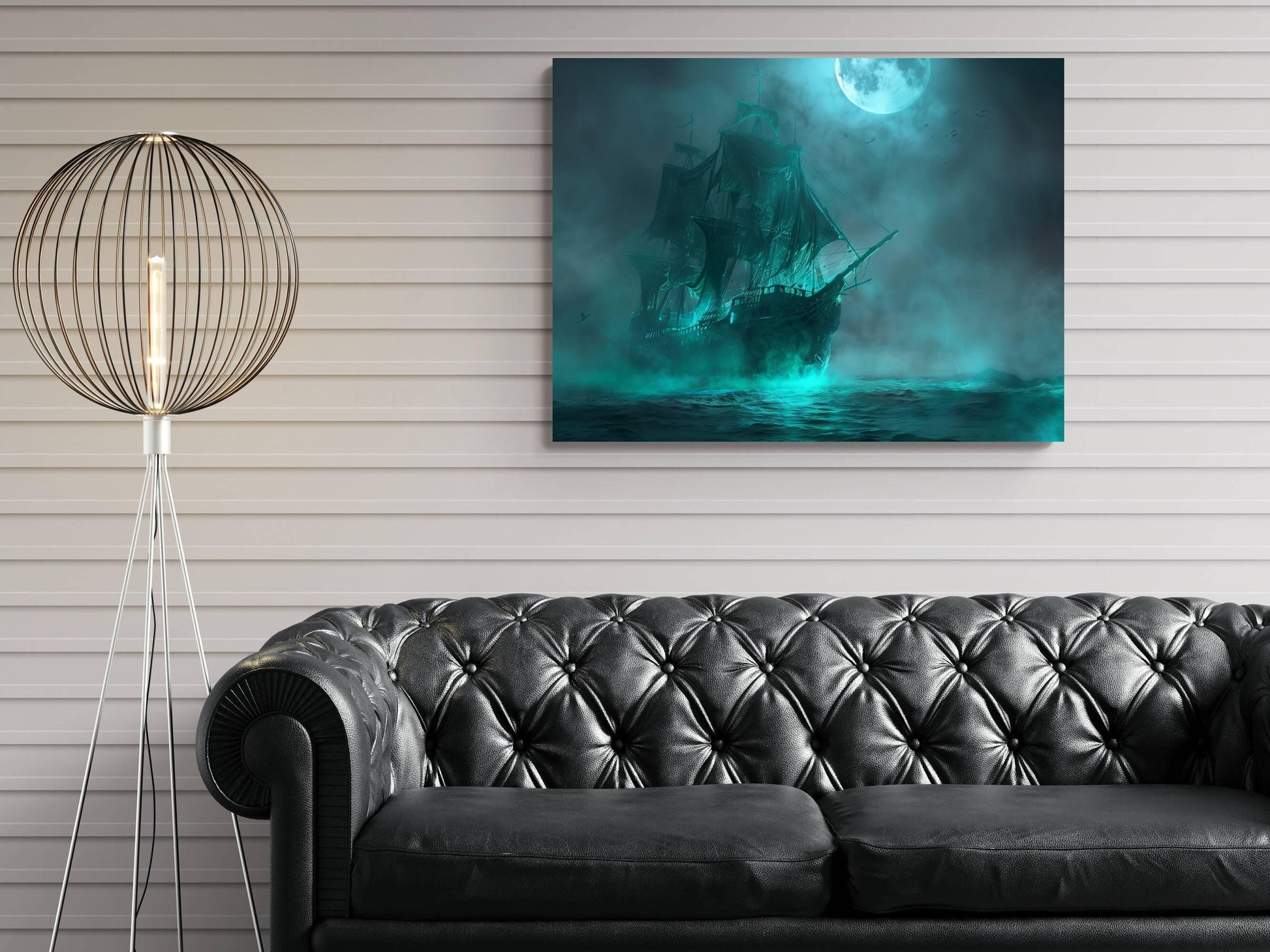 Ghost Ship Canvas Print, Ethereal Pirate Vessel Wall Decor, Spectral Galleon Teal Fog Painting, Haunted Maritime Fantasy Artwork